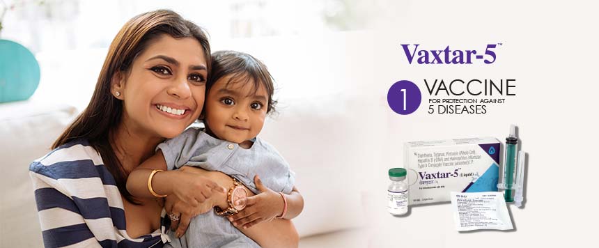 Vaxtar-5 is a sterile, turbid white uniform suspension of purified Diptheria, Tetanus toxoid, Pertussia, Hepatitis B, and Hemophilus influenzae type-B (HiB). It is available in single (1 dose of 0.5mL vial) as well as multiple doses (10 dose vial of 5mL).